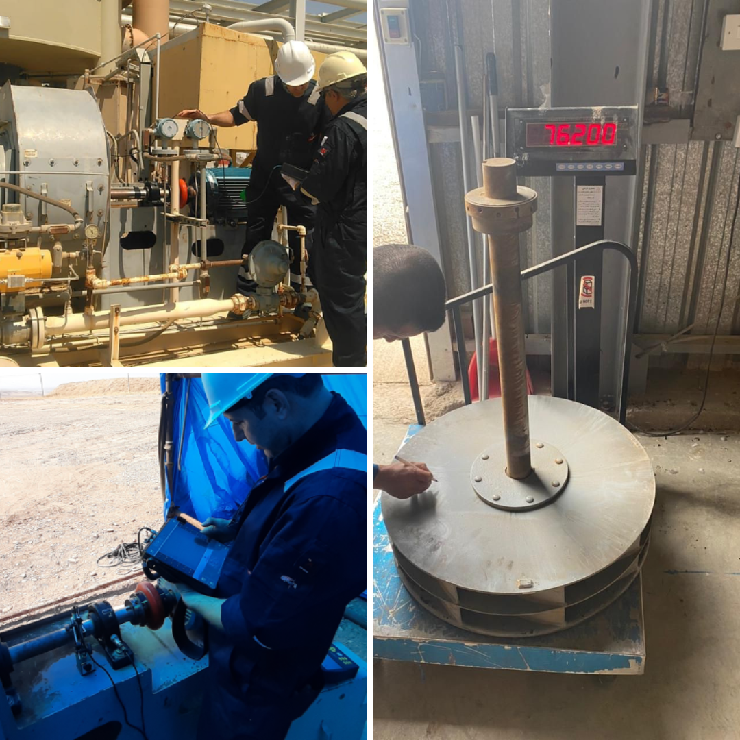 The project involves vibration measurement, mechanical condition assessment, and dynamic balancing of the blower, including diagnosis of bearing and alignment issues, rotor balancing, post-startup measurements, and issuance of a technical report with maintenance recommendations.