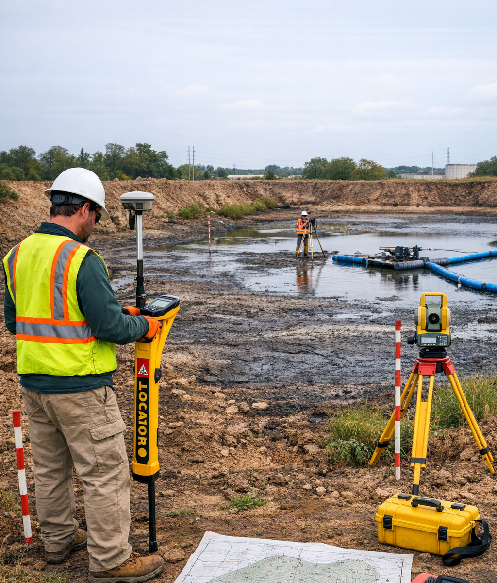 Execution of a detailed topographical survey of the sludge pond area to obtain accurate elevation data, contours, and site features to support design, drainage analysis, and rehabilitation works.