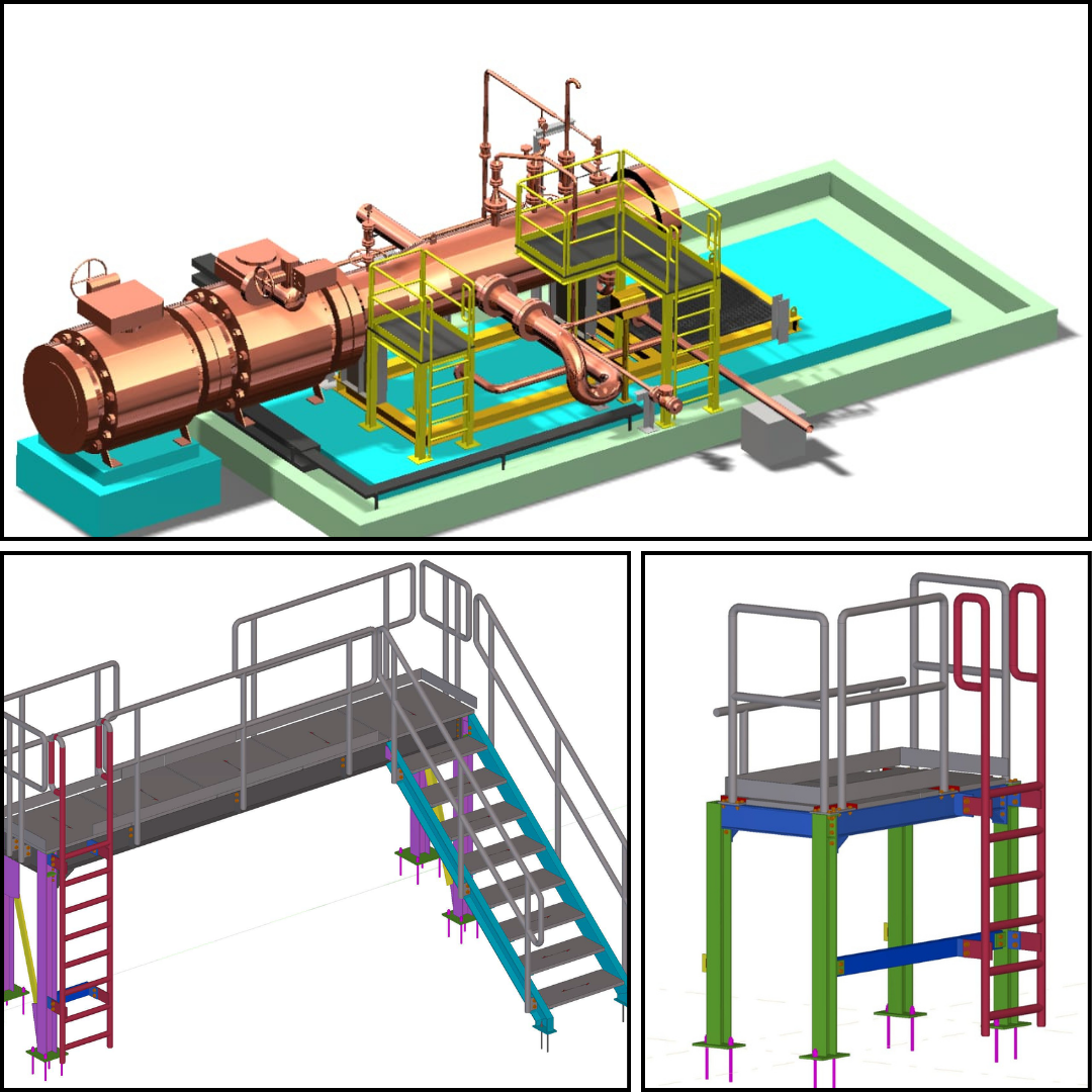 This project involves the development of detailed 3D models for access platforms to support safe and efficient operation and maintenance activities within the facility. The modeling includes structural components such as walkways, ladders, handrails, and supports, ensuring compliance with relevant safety standards and integration with existing equipment and layouts. The 3D models are used for design validation, clash detection, and accurate fabrication and installation planning.
